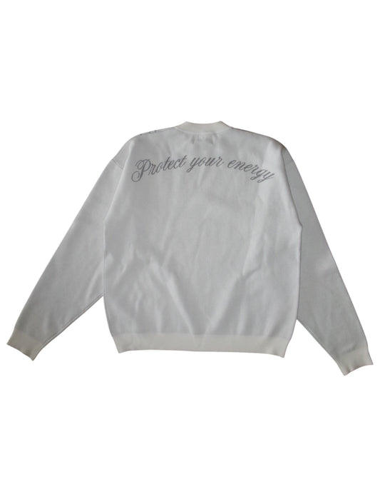 "PROTECT YOUR ENERGY" KNIT SWEATER - POWDER WHITE